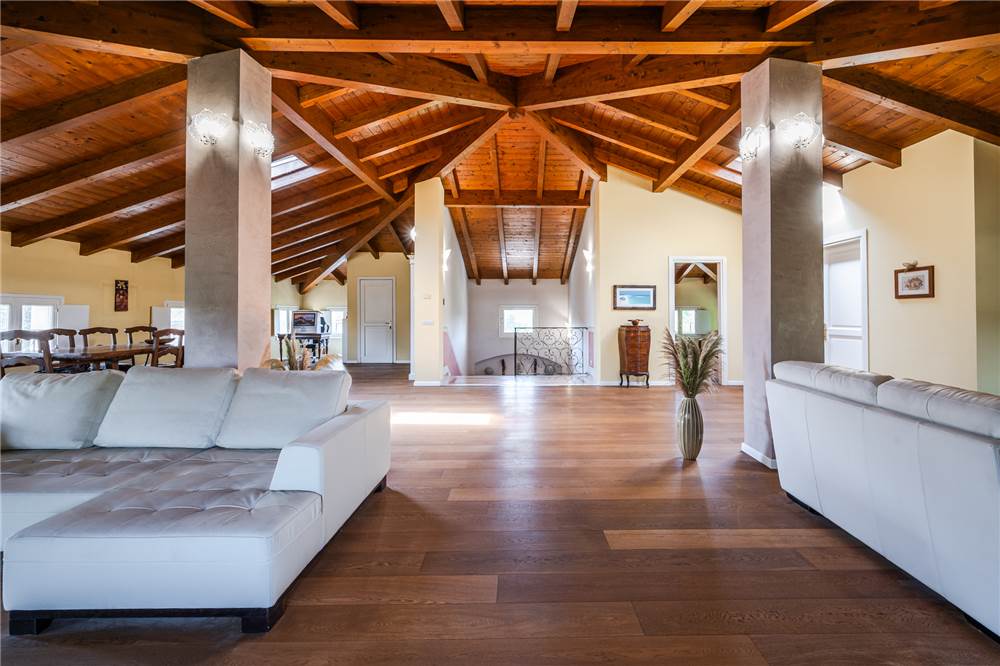 Al primo piano, quattro camere da letto e un bagno creano una zona notte intima e riservata, mentre il sottotetto sorprende con un grande open space luminoso, un bagno aggiuntivo e un ampia camera da letto: spazi ideali per dare forma alle proprie passioni o semplicemente per vivere il tempo con lentezza.