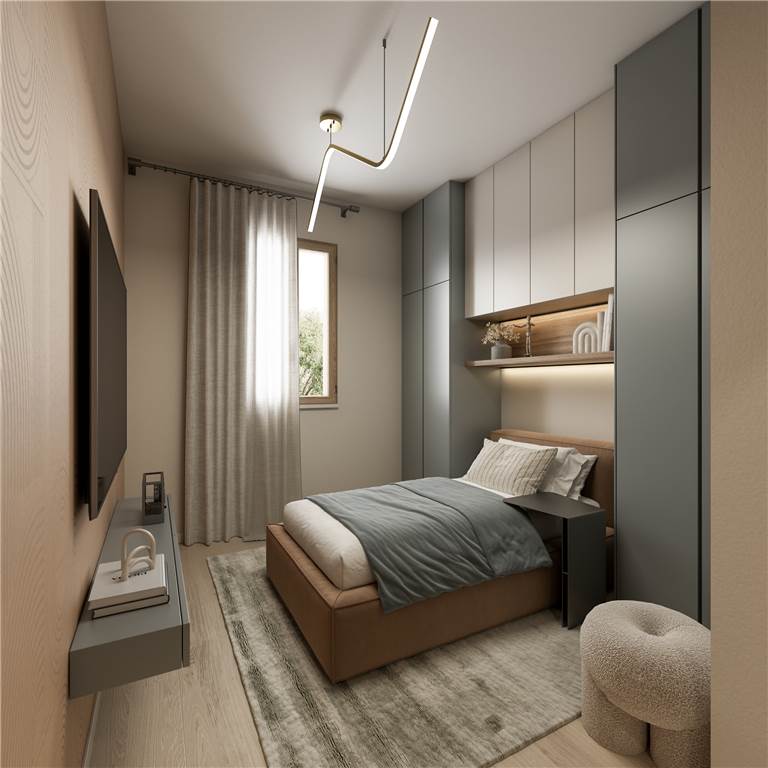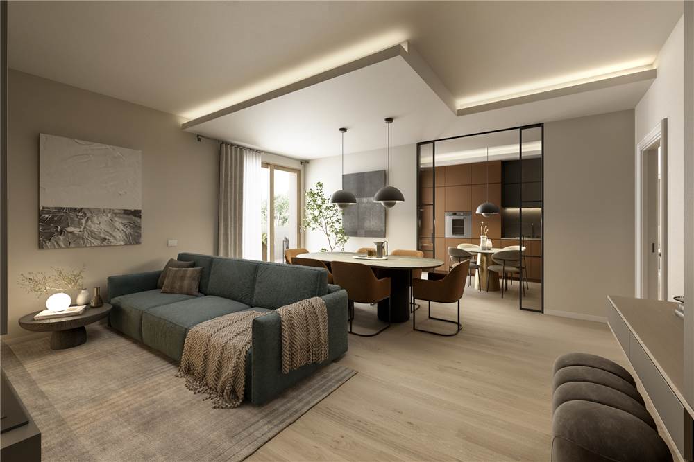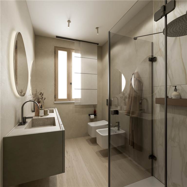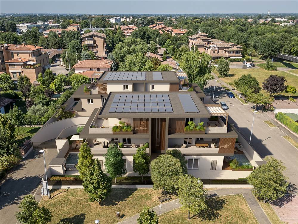 Gli appartamenti luminosi e confortevoli finiti con materiali di altissima qualità sono dotati di impianti domotici di riscaldamento e raffrescamento a pavimento, di ventilazione meccanizzata, di allacciamento all’impianto fotovoltaico, di connessione alla fibra ottica e di predisposizione per sistema antifurto.