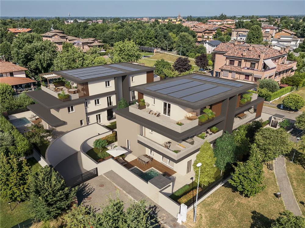 Prestigioso intervento immobiliare situato in zona verde a pochi passi dal Parco Rio dei Gamberi e a pochi minuti dal centro di Castelnuovo che consiste nella realizzazione di due edifici con 5 lussuosi appartamenti ciascuno.