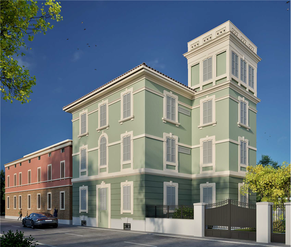VD860-VM2 Nostra esclusiva, Casinalbo, Borgo San Luigi - Ex Salumificio Maletti, in angolo verde comodo a tutti i servizi prossima realizzazione di comparto residenziale (Classe Energetica A4 - NZEB) composto da nr. 9 palazzine, due ville indipendenti e recupero di villa padronale. All'interno della villa padronale vendesi app.to "2" di 156 mq. comm. ubicato al piano primo.