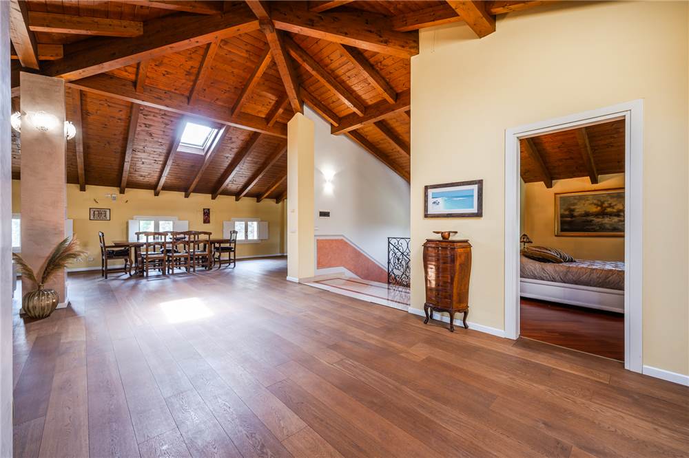Al primo piano, quattro camere da letto e un bagno creano una zona notte intima e riservata, mentre il sottotetto sorprende con un grande open space luminoso, un bagno aggiuntivo e un ampia camera da letto: spazi ideali per dare forma alle proprie passioni o semplicemente per vivere il tempo con lentezza.