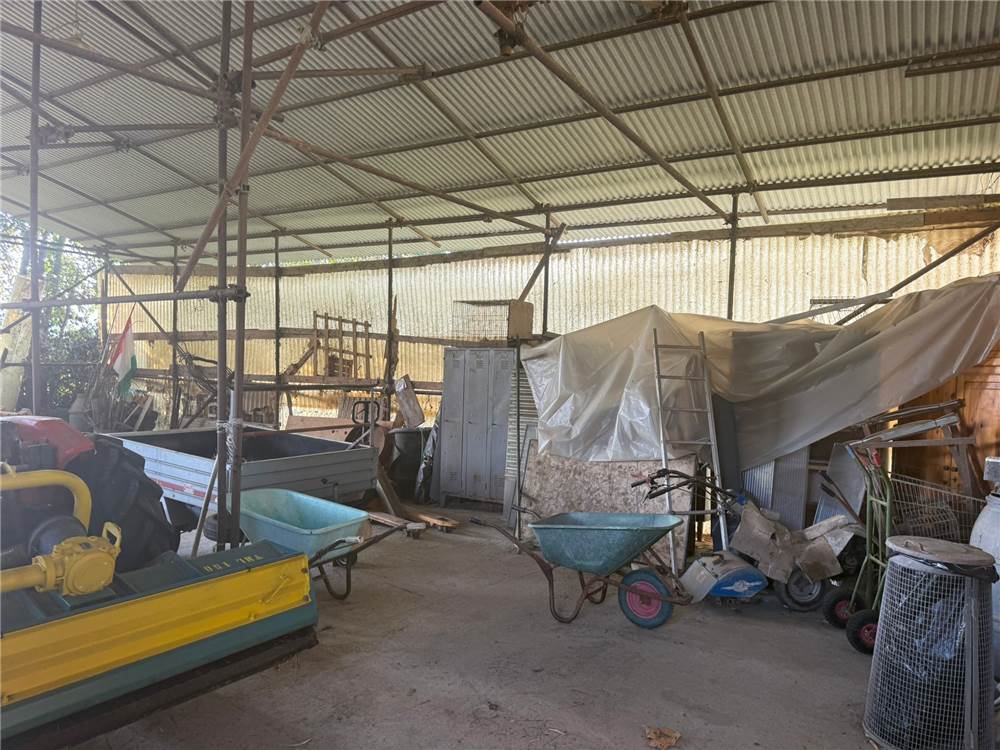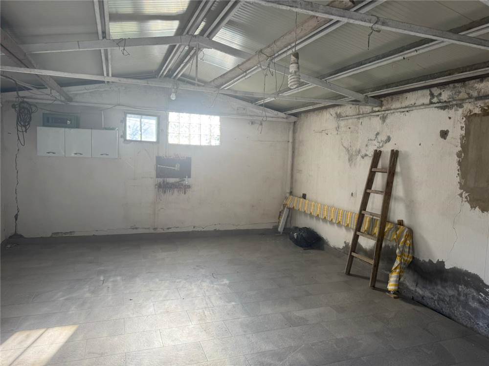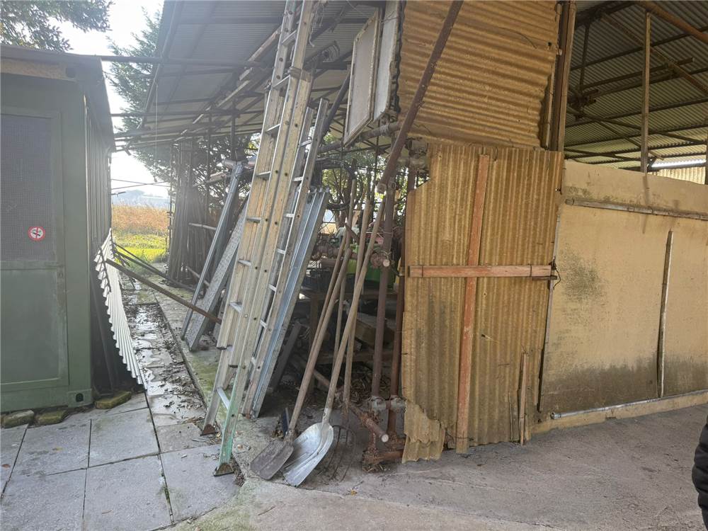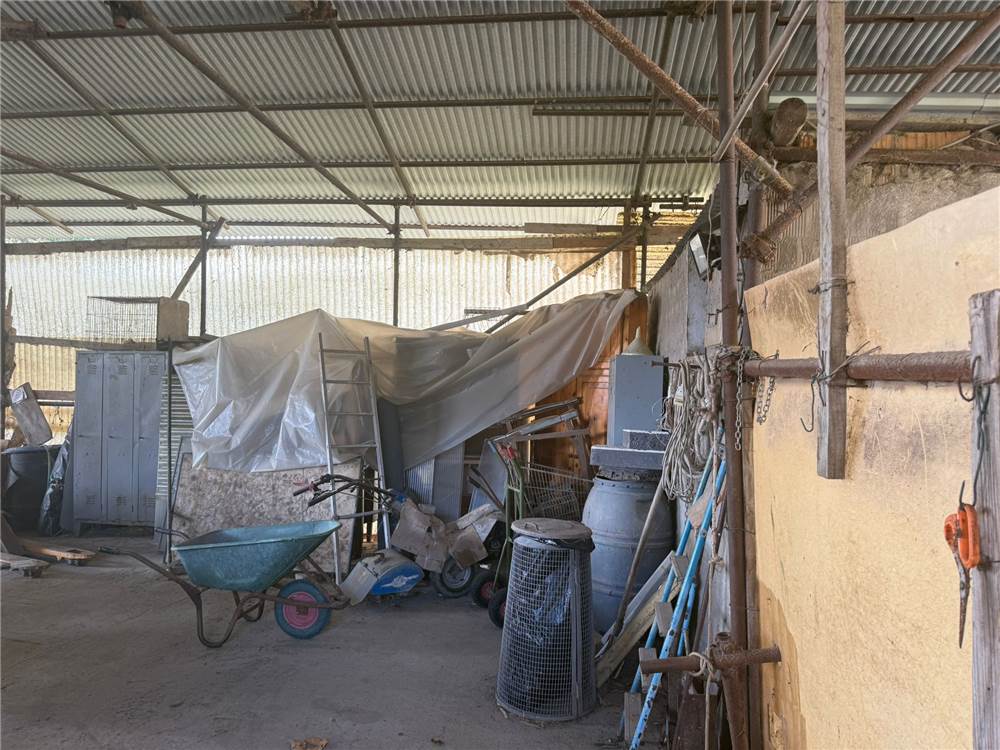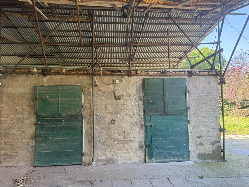 La proprietà comprende un garage, un fienile e due stalle per animali, oltre alla casa principale disposta su un unico livello con sottotetto grezzo.